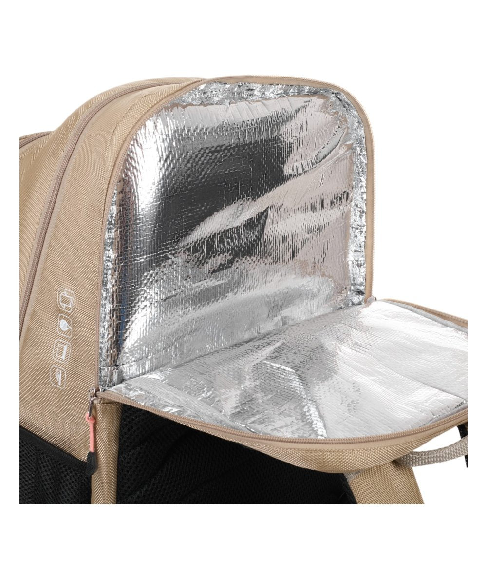 Dispõe de um compartimento principal para levares tudo o que precisas, bem como de um compartimento thermo reforçado com capacidade para duas raquetes. Inclui ainda um espaço separado e ventilado, perfeito para roupa e calçado, e um bolso acolchoado especial para transportar portátil ou tablet.